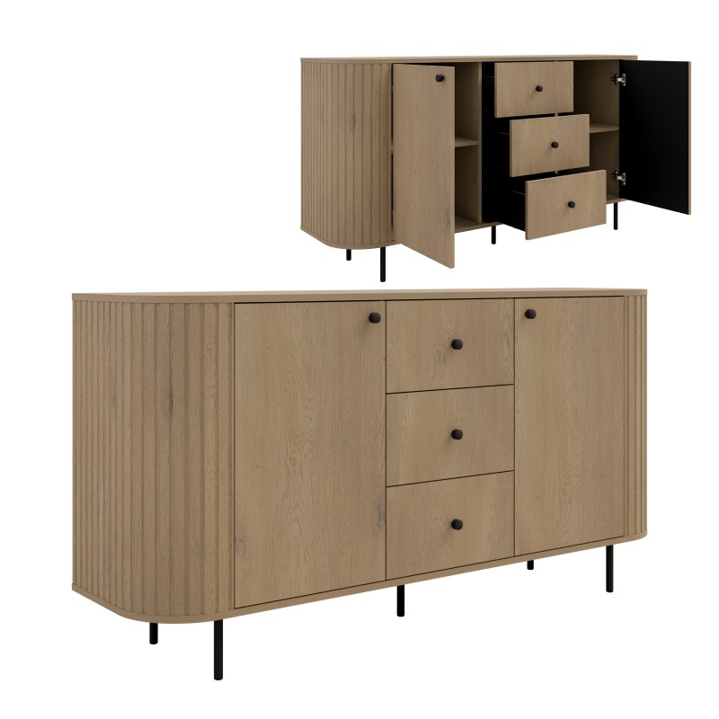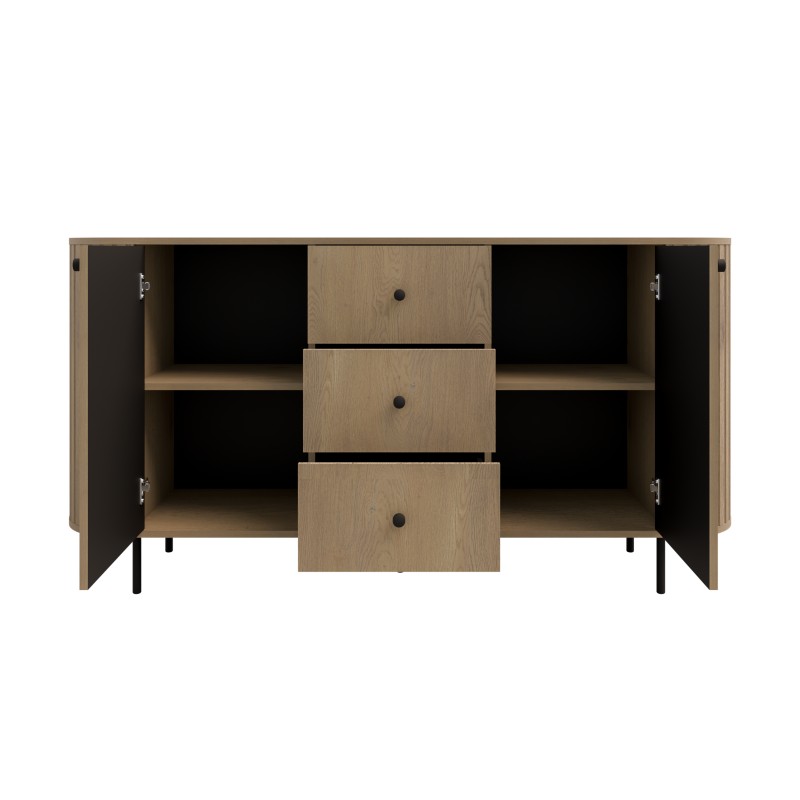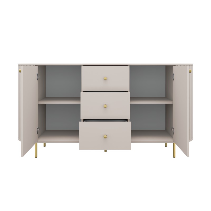 wariantach kolorystycznych – czarnym i złotym – nadają meblom lekkości, nie przytłaczając ich. Kolekcja została zaprojektowana tak, aby każdy element – od witryn i komód, po ławy i