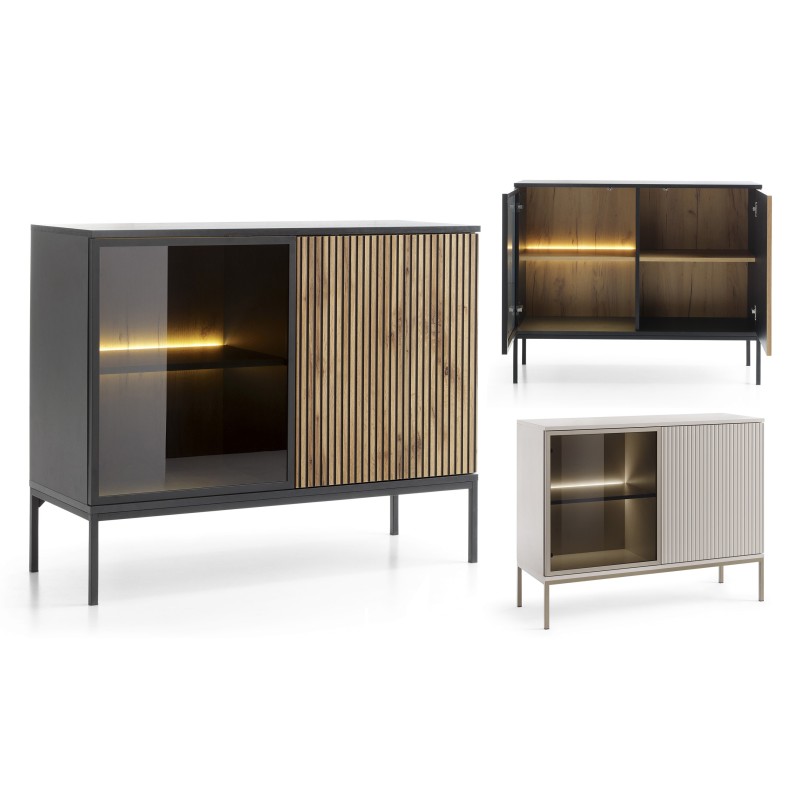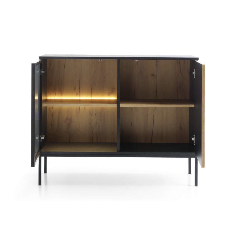 - Elegancja czerni z pięknymi dębowymi akcentami podkreślone ciepłym światłem to wszystko, czego potrzeba, aby stworzyć niezapomnianą atmosferę w Twoim salonie.