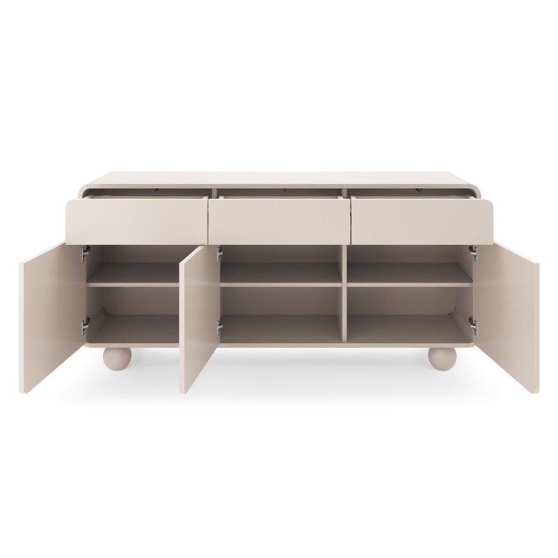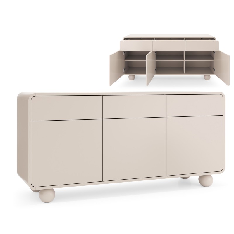 - Kolekcja, w której miękkie linie spotykają się z geometrycznym akcentem — obłe formy i kuliste nóżki tworzą minimalistyczną całość