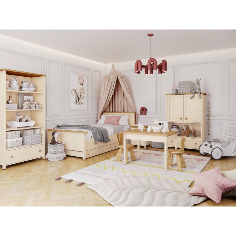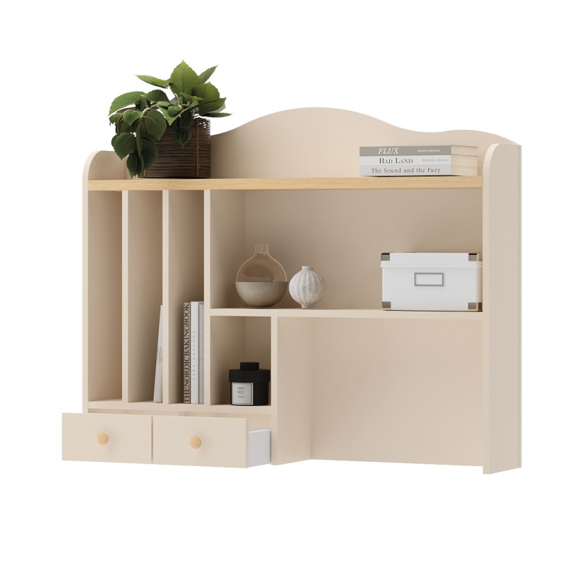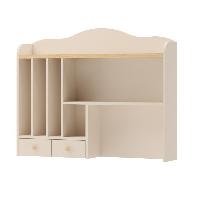 Nadstawka nad biurko z funkcjonalnymi półkami i szufladkami. W prosty i estetyczny sposób uporządkuje przestrzeń wokół biurka. Mebel wykonano z wytrzymałej płyty laminowanej wykończonej trwałym obrzeżem ABS. Uchwyty z tworzywa.