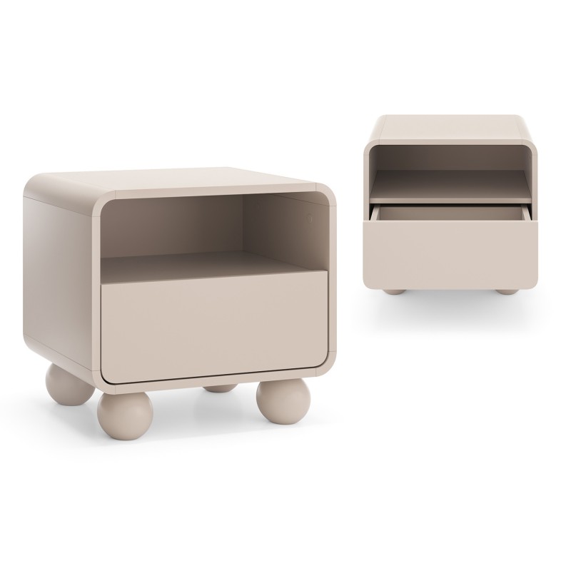 - Kolekcja, w której miękkie linie spotykają się z geometrycznym akcentem — obłe formy i kuliste nóżki tworzą minimalistyczną całość
