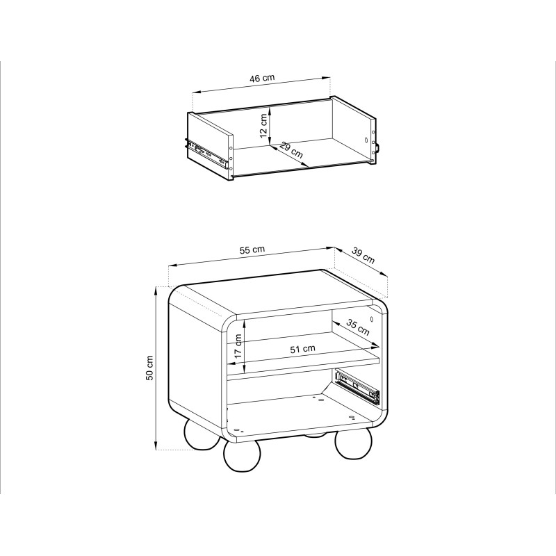 - Korpus oraz fronty z płyty laminowanej 16 mm wykończone obrzeżem ABS