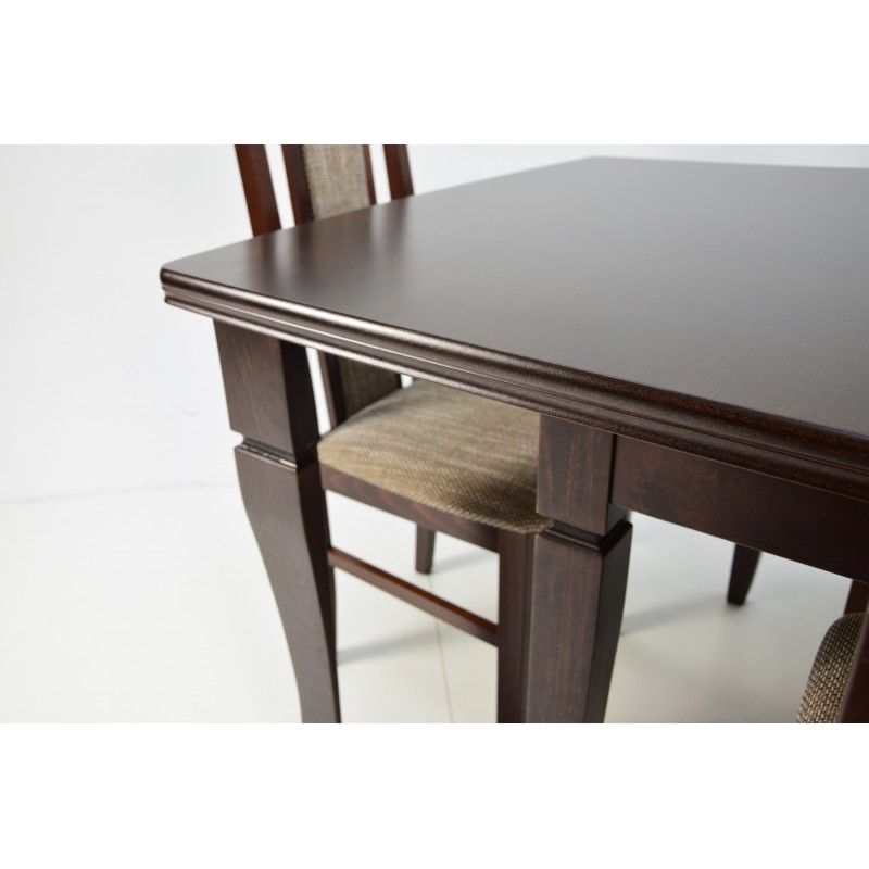 - Blat stołu wykonany jest z okleiny naturalnej, co sprawia, że nie tylko pięknie wygląda, ale także jest odporny na zarysowania.