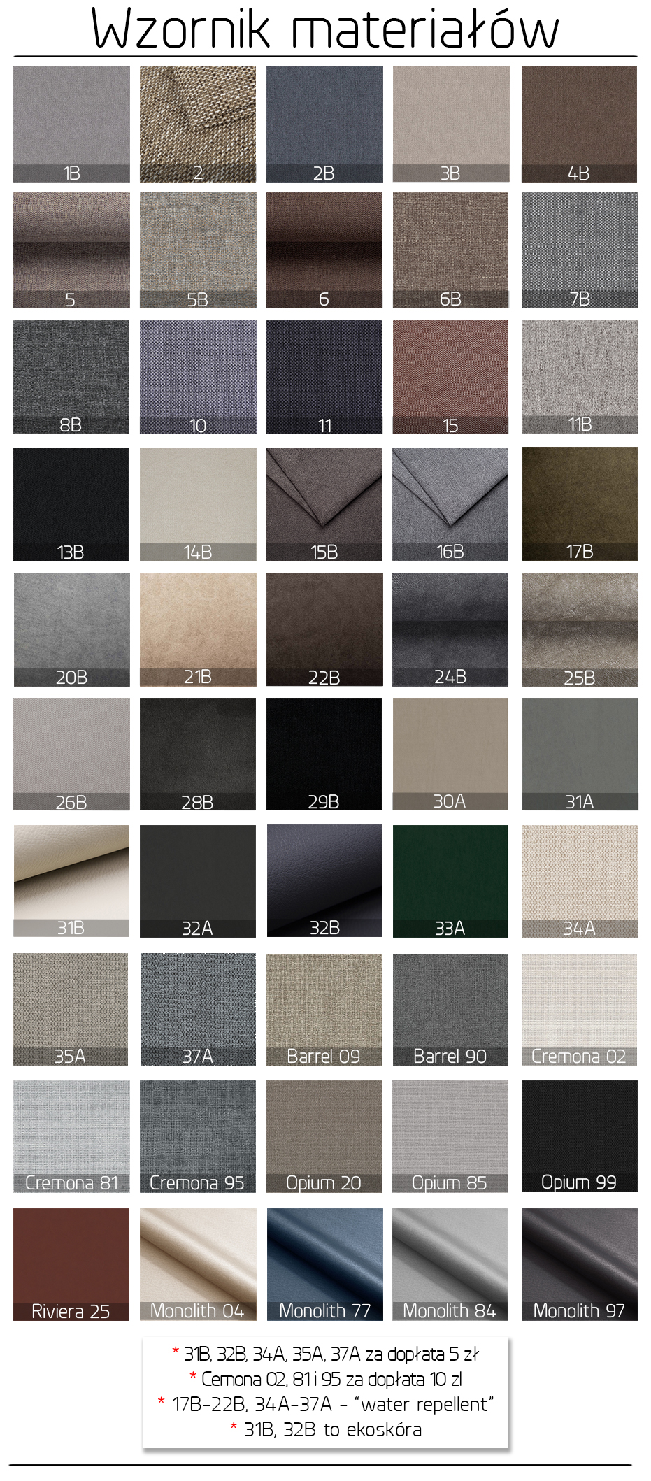 - Duże i wygodne siedzisko obite wybranym materiałem