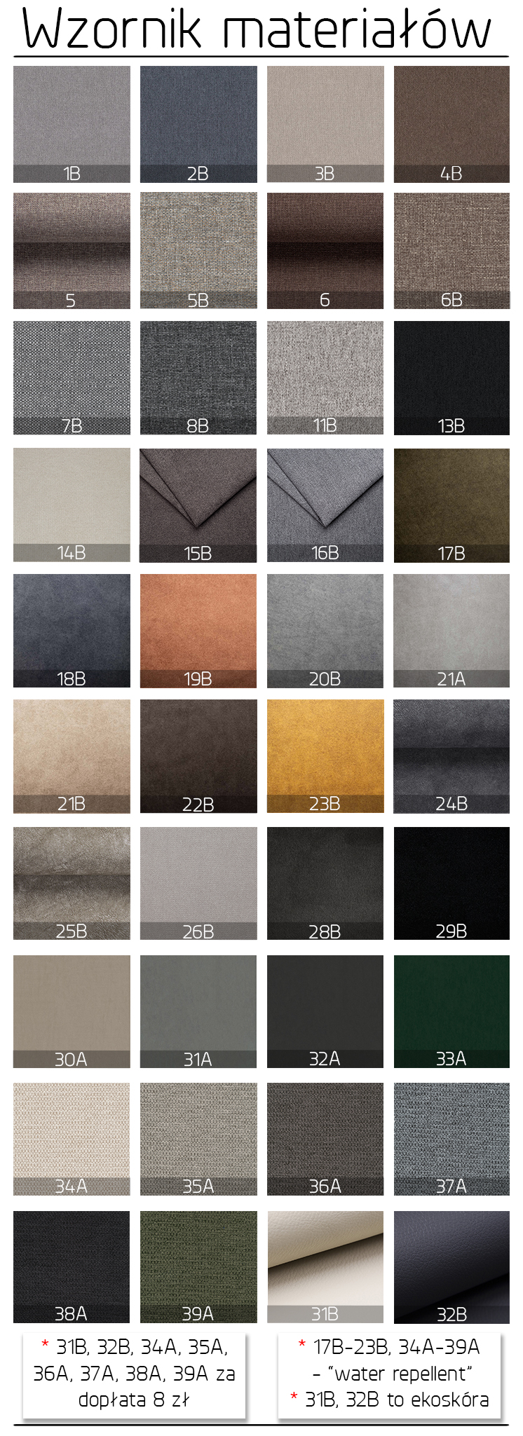 - Duże i wygodne siedzisko obite wybranym materiałem