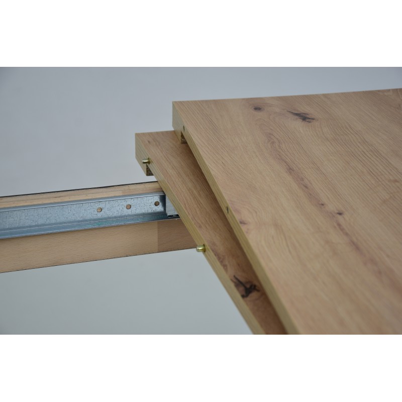 - Stół rozkłada się na prowadnicach łożyskowych. Po złożeniu, wkładkę można przechowywać pod blatem