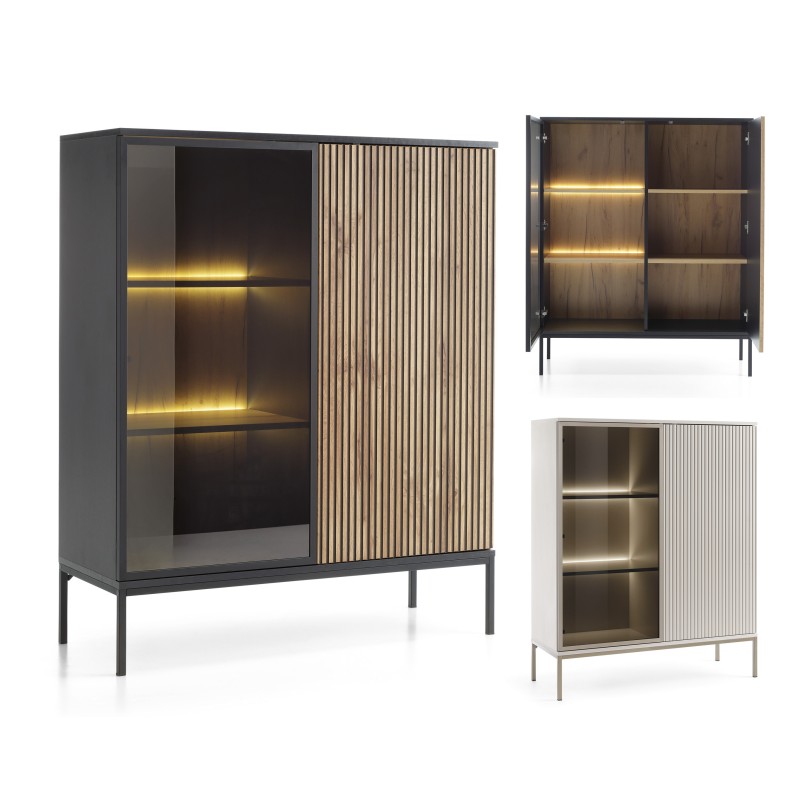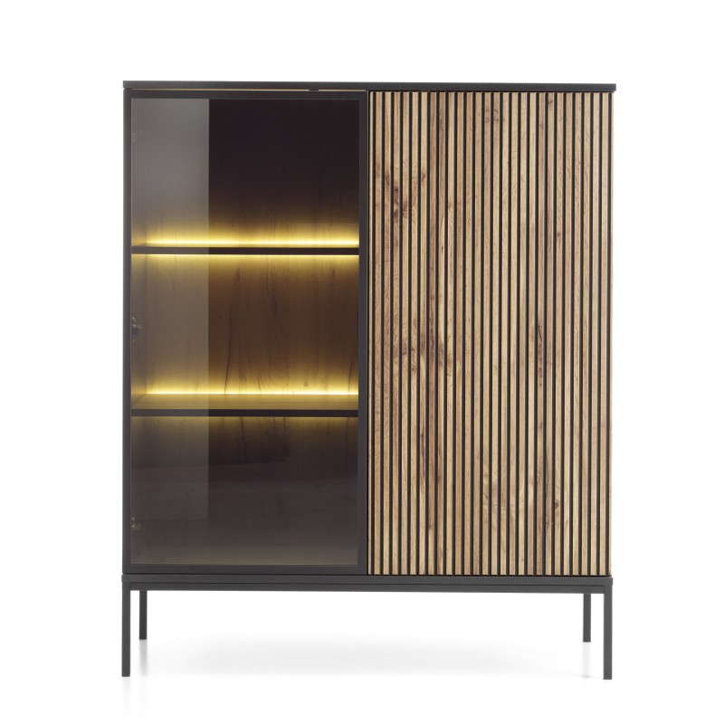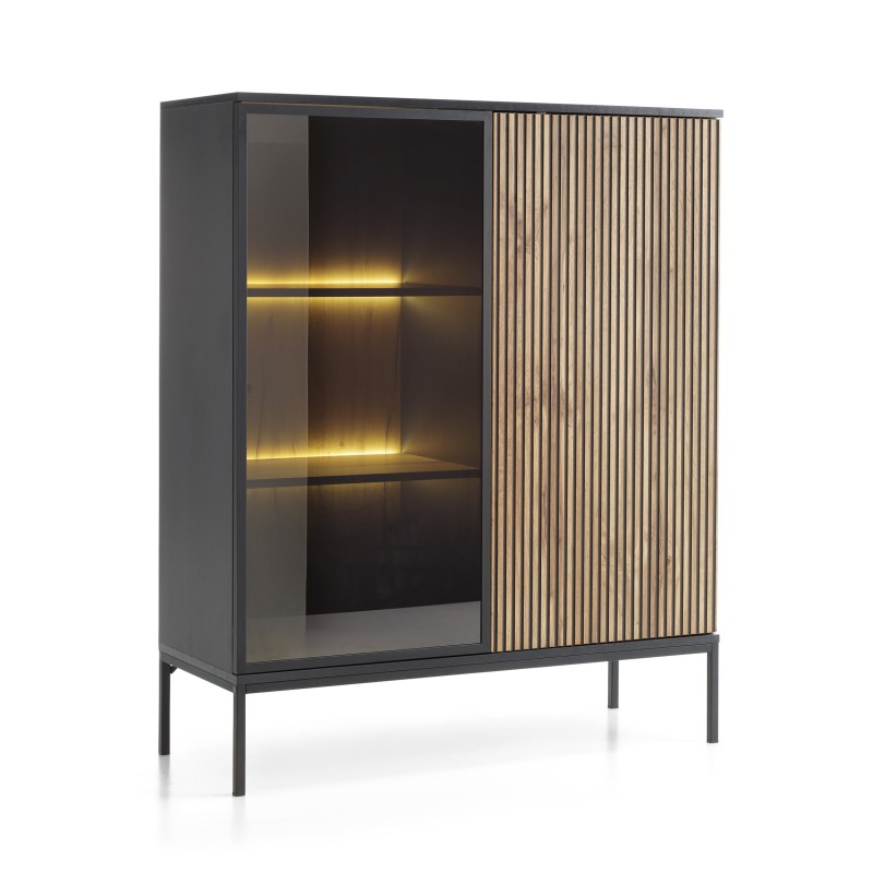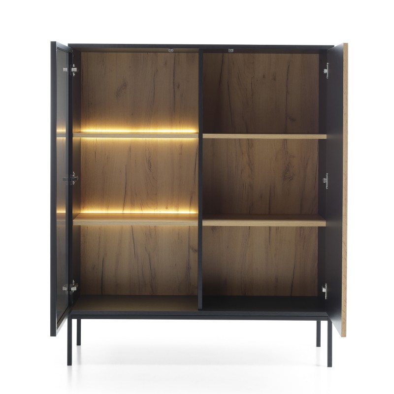 - Elegancja czerni z pięknymi dębowymi akcentami podkreślone ciepłym światłem to wszystko, czego potrzeba, aby stworzyć niezapomnianą atmosferę w Twoim salonie.