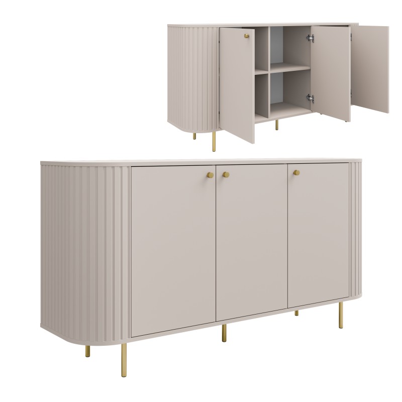 barwach ziemi, takich jak piaskowy beż i dąb cremona, wzbogacona o akcenty w czerni i złocie, które przełamują jasne tonacje. Proste, metalowe nogi oraz uchwyty dostępne w dwóch